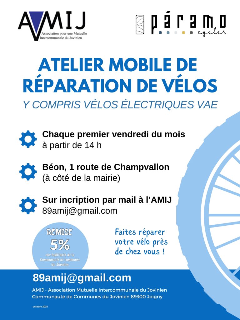 Un nouveau service dans le jovinien proposé par l’AMIJ ! Un atelier mobile d’entretien, de réparation, ou d’achat de vélo de tous types ( y compris